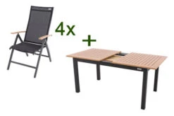 DOPPLER Expert Esstischgarnitur, Anthrazit, Alu/Textilene, 4x Multipositionssessel, 150-210×90 Cm
