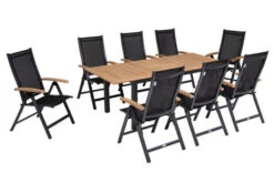 OUTFLEXX Esstischgarnitur, Teakholz, Ausziehtisch 195/295 X 90 Cm, 8 Armlehnensessel, Inkl. Polster