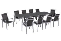 OUTFLEXX Esstischgarnitur, Silber, Alu / Keramik / Textil, Tisch 180/280x100cm, 10 Stapelsessel