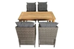 OUTFLEXX Esstischgarnitur, Polyrattan/Teakholz, Tisch 160x90cm, 4 Diningsessel, Inkl. Polster