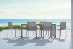 OUTFLEXX Set, Silber, Edelstahl/Teak, Esstisch 200x90cm, 6 Stapelstühle