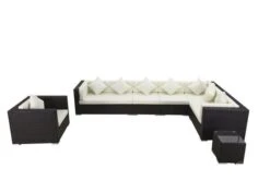 OUTFLEXX Loungemöbel-Set, Braun, Polyrattan, 6 Personen, Wasserfeste Kissenbox, Inkl. Loungetisch