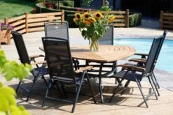 HARTMAN Raffaelo Multipositionssessel, Xerix/anthrazit, Alu/Textilene, Mit FSC-Teak-Armlehnen