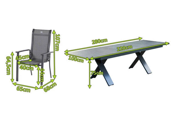 Der Tisch mit dem gekreuzten Gestell ist gefertigt aus pulverbeschichtetem Aluminium in der Farbe Xerix (Anthrazit) und wird optisch perfekt durch die Glaskeramik-Tischplatte, ebenfalls in der Farbe Xerix ergänzt. Die Maße von ca. 220 x 100 x 75 cm sorgen dafür, dass stets ausreichend Ablagefläche zur Verfügung steht. Bei Bedarf kann der Tisch auf eine Länge von ca. 280 cm ausgezogen werden, so finden bequem auch große Runden genügend Platz in Ihrem Garten. Dank der Ausziehfunktion hebt sich dieses Modell von den üblichen Tischen der Xanadu Serie ab – den Ausziehtisch erhalten Sie exklusiv bei uns.
