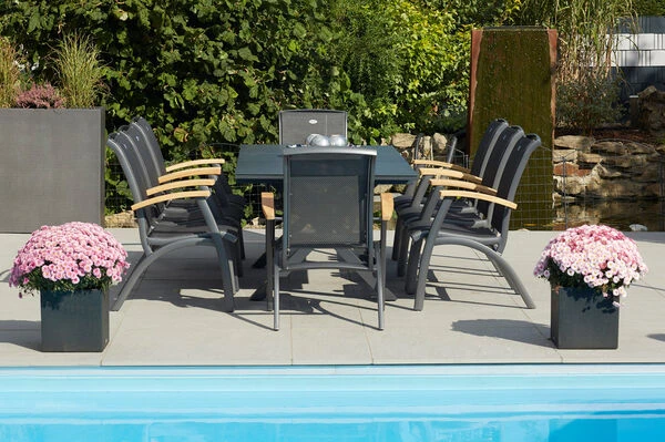 8x Gartensessel Da Vinci in xerix/anthrazit, Armlehnen aus FSC®-Teakholz