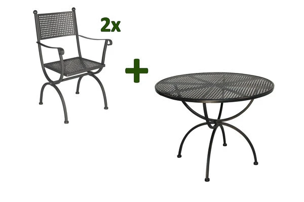 MBM Romeo Esstischgarnitur, marone, Schmiedeeisen verzinkt, Tisch Ø 100 x 73, 2x Sessel