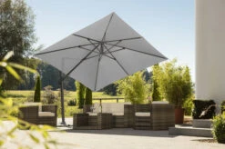 Mit dem Ampelschirm von OUTFLEXX® sind Sie für Ihren Sommer im Garten perfekt gewappnet!