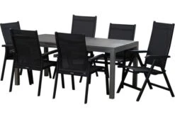Trotzen Sie den Elementen und überzeugen Sie sich von der Haltbarkeit der erstklassigen Materialien: sie machen Ihre neuen Möbel nicht nur pflegeleicht, sondern auch witterungsbeständig. Die Gestelle aus Aluminium in der Trendfarbe “anthrazit matt” sind aufgrund der Pulverbeschichtung widerstandsfähig gegen jegliche Umwelteinflüsse und sie verleiht den Möbeln besondere Stoß-, Schlag- und Kratzfestigkeit. Die Tischplatte mit Spraystone Beschichtung hält spielend Kälte und Frost stand. Das luftige Outdoorgewebe der Rücken- und Sitzflächen (Textilene) besteht aus 100 % Polyester, ist UV- und sonnenölbeständig und trocknet nach einem Regenguss so schnell, dass Sie bereits kurz danach wieder Platz nehmen können. Das FSC®-zertifizierte Teakholz ist ebenfalls witterungsbeständig und hält sowohl Hitze und Frost, als auch Regen und Feuchtigkeit aus. Es hat außerdem einen natürlichen Schutz gegen Pilze und andere Schädlinge, sodass sich die Pflege auf ein Minimum beschränkt. Mit etwas Wasser lassen sich auch oberflächliche Verschmutzungen leicht direkt entfernen, so bleibt Ihnen mehr Zeit für die angenehmen Tätigkeiten in Ihrem Garten. Zusätzliche Fußkappen vermeiden unschöne Kratzer auf Ihrer Terrasse und bieten zugleich Schutz für Ihre Möbel. Dank der einmaligen Qualität werden Sie sich über viele Jahre an diesem Set erfreuen.