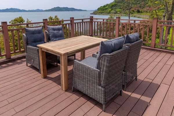 Das verwendete Teakholz und dessen hochwertige Verarbeitung macht den Tisch besonders strapazierfähig, robust und zusätzlich sehr stabil. Es ist besonders witterungsbeständig und hält sowohl Hitze und Frost, als auch Regen und Feuchtigkeit aus. Es hat außerdem aufgrund des hohen Anteils an holzeigenen Ölen einen natürlichen Schutz gegen Pilze und andere Schädlinge, sodass sich die Pflege dieser Möbel auf ein Minimum beschränkt und Sie Ihre Zeit im Garten mit angenehmen Tätigkeiten verbringen können. Das Teakholz ist ein Naturprodukt und lässt so jedes Möbelstück zu einem Einzelstück werden. Diese Natürlichkeit wird mit der allmählichen Patinabildung in einem schönen Silbergrau unterstrichen. Wenn Sie dieser entgegen wirken möchten, empfehlen wir Ihnen eines unserer Pflegeöle, welches Sie im Zubehör finden. Zum Schutz Ihrer Terrasse sind die Möbel zusätzlich mit Fußkappen ausgestattet, welche unschöne Kratzer vermeiden.