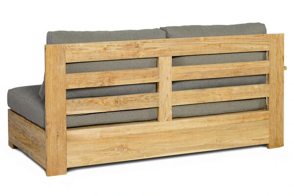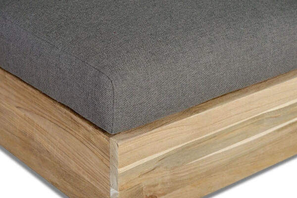 Das verwendete Teakholz und dessen hochwertige Verarbeitung machen die Lounge besonders strapazierfähig, robust und zusätzlich sehr stabil. Teakholz ist besonders witterungsbeständig und hält sowohl Hitze und Frost, als auch Regen und Feuchtigkeit aus. Es hat außerdem aufgrund des hohen Anteils an holzeigenen Ölen einen natürlichen Schutz gegen Pilze und andere Schädlinge, sodass sich die Pflege dieser Ecklounge auf ein Minimum beschränkt und Sie Ihre Zeit im Garten mit angenehmen Tätigkeiten verbringen können. Das Teakholz ist ein Naturprodukt und lässt so jeden Sessel zu einem Einzelstück werden. Diese Natürlichkeit wird mit der allmählichen Patinabildung in einem schönen Silbergrau unterstrichen. Wenn Sie dieser entgegen wirken möchten, empfehlen wir Ihnen eines unserer Pflegeöle, welches Sie im Zubehör finden.
