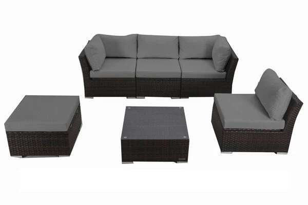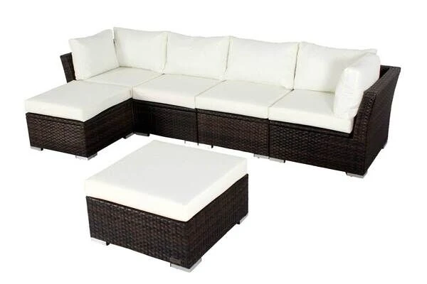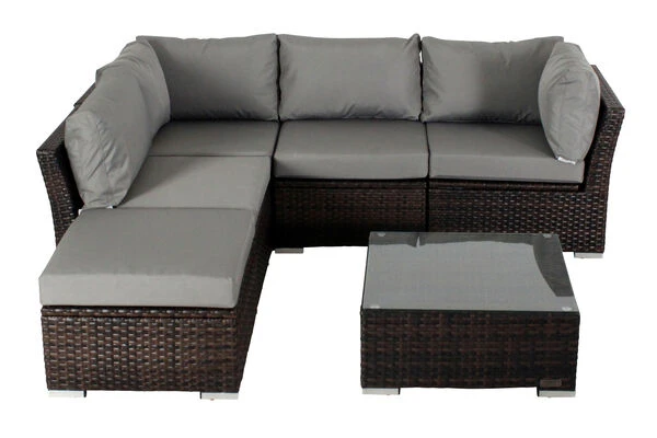 Mit ihrem klaren Design und den variablen Anordnungsmöglichkeiten wird diese Sitzgruppe das neue Highlight in Ihrem Garten. Das verwendete wetterfeste flache Geflecht aus strapazierfähigem Polyrattan ist besonders UV-beständig und trotzt auch extremen Temperaturen. Im Inneren befindet sich ein rostfreies Aluminiumgestell, welches für die nötige Stabilität sorgt und aufgrund des geringen Gewichts einen einfachen Platzwechsel ermöglicht.