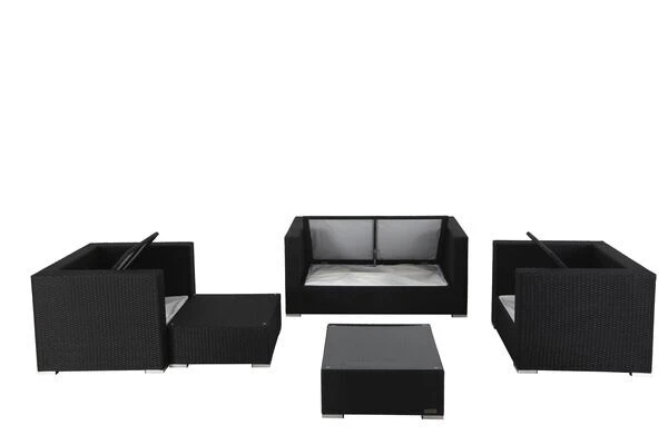 Polyrattan-Sitzgruppe mit Kissenboxfunktion in schwarz für 5 Personen