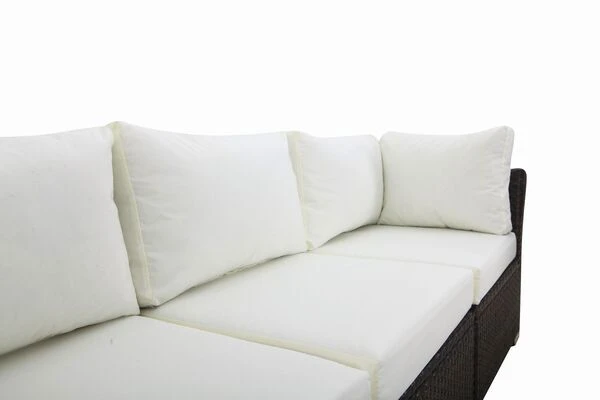Ihre neuen Gartenmöbel sind zudem äußerst pflegeleicht und strapazierfähig, da die verwendete flache Faser sowohl Hitze und Frost als auch UV-Strahlen, Salzwasser und Chlor unbeschadet hinnimmt und nichts von ihrer ursprünglichen Schönheit einbüßt. Die besonders stabile Aluminiumrohrkonstruktion besteht aus einem Stück, ist stabil verschweißt und damit ein weiteres Merkmal für höchste Qualität. Die einzelnen Sitz-Elemente sind jeweils mit bis zu ca. 150 kg belastbar. Die Sitzflächen der Möbel lassen sich hochklappen. Der Stauraum darunter ist jeweils mit einer wasserdichten Kissentasche ausgestattet, die mittels Reißverschluss geschlossen wird. Alle Polster lassen sich so sicher und problemlos verstauen.