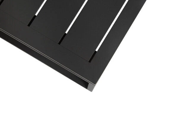 Jede Sitzfläche der modernen Loungegruppe ist mit ca. 64 cm Tiefe und ca. 83 cm Breite großzügig proportioniert und kombiniert mit den luxuriösen Polstern erhalten Sie höchsten Sitzgenuss. Auf der geräumigen Sitzfläche der Ecklounge lässt es sich auch herrlich bei einem Mittagsschläfchen entschleunigen. Und der Hocker bietet nicht nur eine tolle Sitzgelegenheit, er ist auch perfekt zum Hochlegen Ihrer Füße oder zum Vergrößern der Liegefläche. Bei den Sitzmöbeln unterstreicht das Zusammenspiel aus robusten pulverbeschichteten Aluminium-Gestellen mit Polstern aus Sunbrella-Schaumstoff in „sooty“ den hochwertigen Charakter der Polstermöbel. Die einzigartige Materialkombination wertet jeden Loungebereich auf und wird Sie und Ihre Gäste begeistern. Der elegante, rechteckige Kaffeetisch in anthrazit hat eine Größe von ca. 100 x 80 cm und eine Gesamthöhe von ca. 30 cm. Das Tischgestell und die ca. 3 cm starke Tischplatte bestehen ebenfalls aus pulverbeschichtetem Aluminium, was ihm seine edle Optik und einen natürlichen Look verleiht. Die Platte ist robust, pflegeleicht und dazu noch wetterfest – hier kommt man gerne zusammen. Dank des geringen Gewichts lassen sich die Möbel auch leicht an Ihren Lieblingsplätzen im Garten, auf der Terrasse oder dem Balkon platzieren. Hier sitzen Sie nicht nur bequem, sondern mit Stil. Genießen Sie die Erholung in Ihrem Garten mit einen Hauch Beach Club-Feeling.