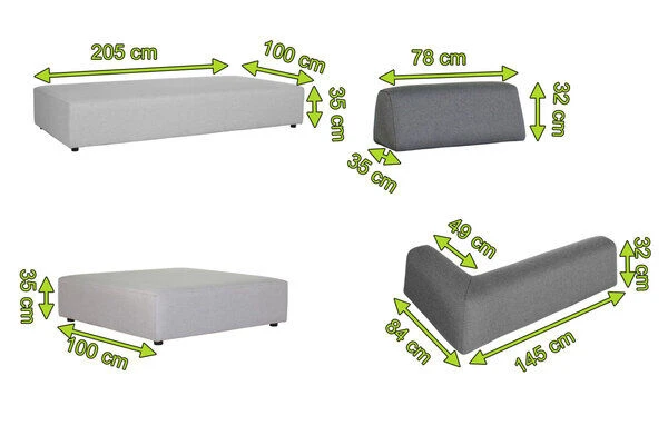 - 2x: Rückenlehne mit Ecke links: ca. 145 x 84 x 32 cm