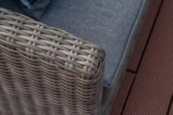 Das Gestell der Sitzgruppe besteht aus pulverbeschichtetem Aluminium in anthrazit und die Sitz- und Rückenfläche ist bespannt mit sehr dickem XL Rope Gewebe ( ca. 3 x 4 cm dick). Dieses im Trend liegende Material ist leicht, robust und stabil. Wenn es regnet oder schneit, sollten Sie diese Lounge allerdings abdecken oder geschützt unter einer Überdachung abstellen. Kein Wunder also, dass viele der hergestellten Gartenmöbel inzwischen mit Aluminium verarbeitet werden. Das hier verwendete Material Rope ist ein modernes Geflecht mit Kordeloptik. Schlicht und auffallend zugleich. Sie dachten, das ginge nicht? Diese Sitzecke beweist das Gegenteil. Strapazierfähig und pflegeleicht ist Rope ebenfalls, so dass Sie nicht viel Arbeit in diese Lounge investieren müssen. Außerdem befinden sich im Lieferumfang die grauen Polster für die Sitz- und Rückenfläche, die aus Polyester gefertigt worden sind. Die Bezüge der Polster sind abnehmbar und können auch gewaschen werden, falls diese einmal dreckig werden.