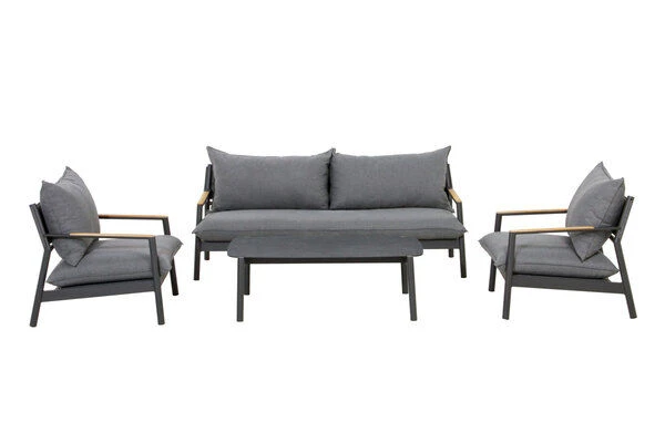 OUTFLEXX® Monti Loungemöbel, dunkelgrau, Alu/Teak/Keramikglas/Polyester, für 4 Personen, inkl. Loungetisch