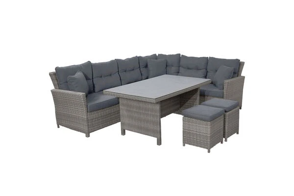 Ploß Vigo Dining-Lounge, ca. 201 x 259 cm, Polyrattan-Geflecht stahlgrau-meliert