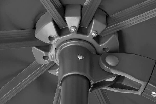| Per Fußpedal um 360° drehbar Das massive Drehgelenk aus Stahl ermöglicht Ihnen ein einfaches drehen um 360°. Per Fußpedal lösen und schließen Sie die Arretierung. Somit bietet Ihnen der Schirm einen perfekten Sonnenschutz von früh bis spät. | |