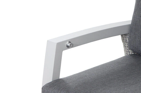 Die verwendeten Materialien sorgen bei Wind und Wetter für den nötigen Schutz. Die Untergestelle der Möbel bestehen aus pulverbeschichtetem Aluminium in matt-weiß-grau und machen sie nicht nur stabil, sondern auch recht leicht. Das Aluminiumgestell wird mit halbrundem GARDINO®-Geflecht aus Polyethylen bespannt. Diese Faser trocknet besonders schnell, ist schmutzunempfindlich und erzeugt mit ihrer natürlichen Optik eine edle und moderne Ausstrahlung. Der „ice grey“ Grauton der Faser verleiht fast jeder Gartengestaltung ein modernes Flair. Die gemütlichen und pflegeleichten Sitzpolster aus 100 % Polypropylen (280 g/m²) sind farblich passend auf das Geflecht abgestimmt. Bei Verschmutzung können Sie die Bezüge abnehmen und von Hand waschen. Erfreuen Sie sich an Ihrer Wohlfühloase, die sicherlich auch Freunde und Familie begeistern wird.