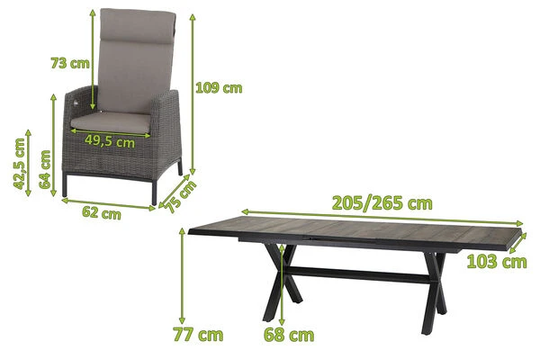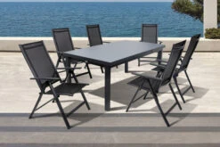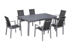 SIENA GARDEN Sincro/Amira Dining Set, anthrazit/grau, Alu/Gardino®-Geflecht/Keramik, ca. 200-260x103cm, inkl. 6 Diningsessel, verstellbar