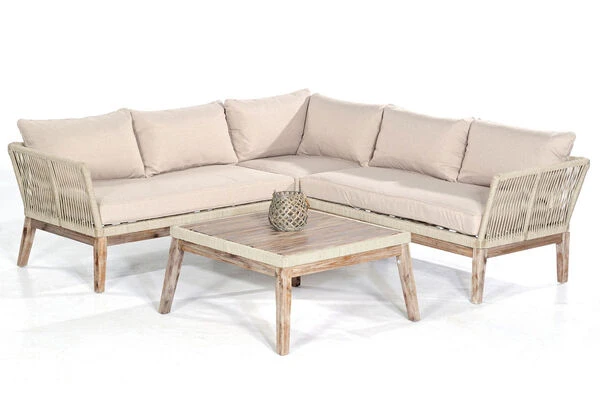 SUNNY SMART Bella Loungemöbel, sand, Alu/Akazienholz/Polyrope, inkl. Kaffeetisch, Dekokissen und Polster